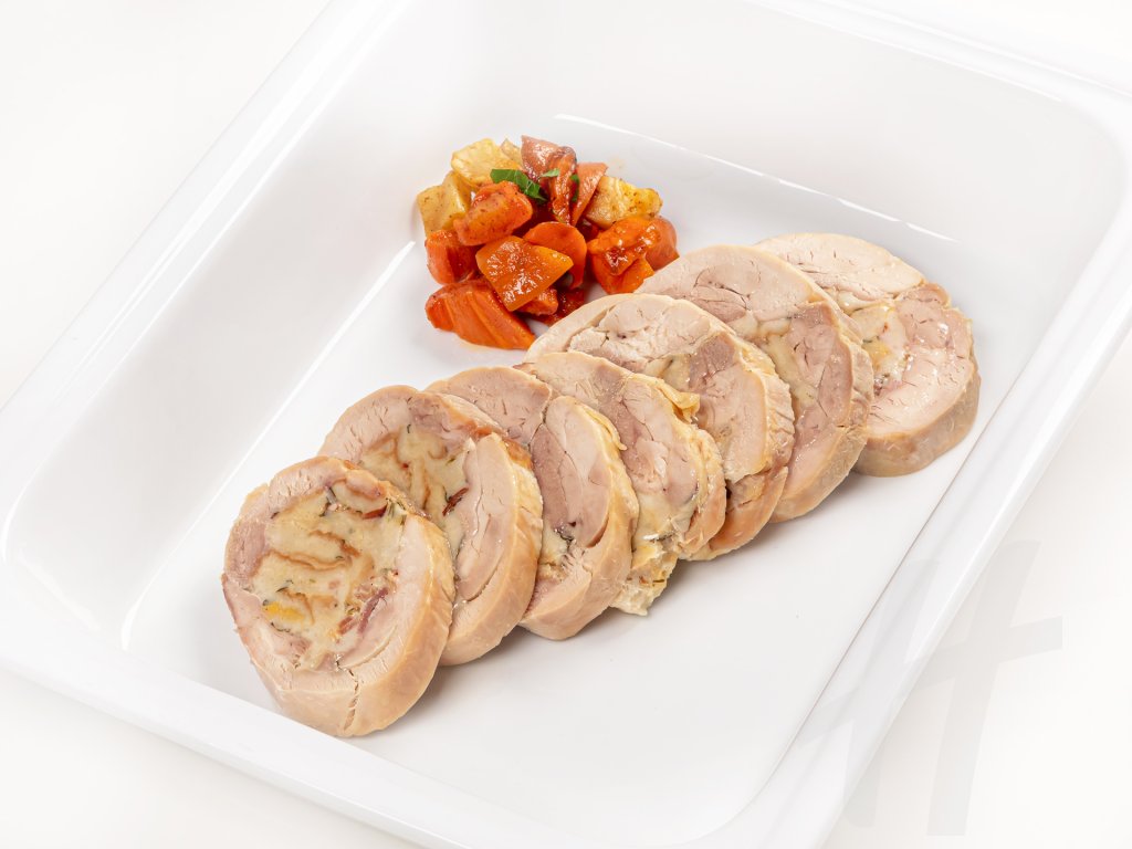 Kuřecí roláda s žemlovou nádivkou a slaninou